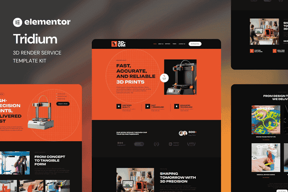 Tridium is a bold and modern Elementor Template Kit built specifically for 3D printing and rendering services. With a sleek layout, futuristic design elements, and high-impact visuals, Tridium helps you showcase your technology, projects, and services with clarity and confidence. This template kit is fully responsive, SEO-friendly, and designed to convert visitors into leads—perfect for engineering firms, 3D printing studios, or tech innovators.