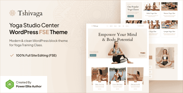 Introducing Tshivaga, a WordPress theme designed for Yoga Studios and Training Centers. Fully compatible with the WordPress Block Editor and powered by the Gutenverse plugin, this theme offers a professional design with a 100% responsive layout and is easy to customize, so no coding is required.