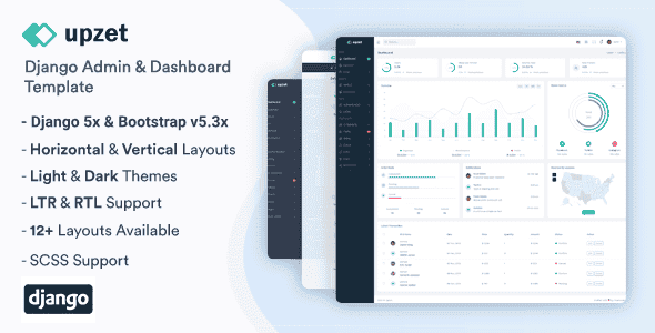 Upzet – Django is a Bootstrap 5.3.3. based fully responsive admin dashboard template. It is a fully-featured premium admin dashboard template in Python Django with developer-friendly codes. Starterkit is added to a quick start with your project.
