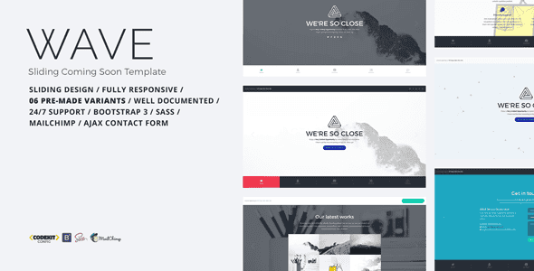 WAVE has been built with the Framework Bootstrap 3, responsive on every screens from phone to TV, easy to customize, HTML5 verified 100% by the W3C, CSS3, SASS and Mailchimp.