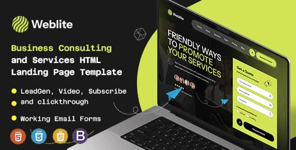 Weblite – Creative and Business Consulting HTML Landing Page Template is a professional One Page business HTML landing page designed for Consulting Businesses, Consultants, Agencies and any kind of creative and corporate Business Companies .Weblite has a uniquely modern and fully customizable layout, it’s based on Bootstrap 5. It has 4 Different layouts LeadGen, Click Through, Subscription, and Video Marketing Layouts. The layout is fully responsive on each responsive device. The forms are working in this template..