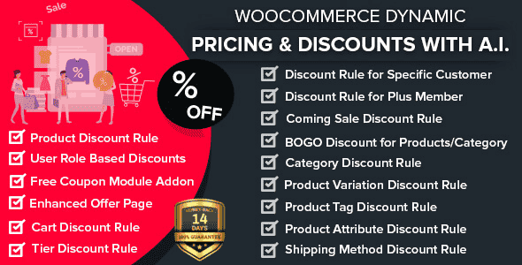 The WooCommerce Dynamic Pricing & Discounts with A.I. plugin with a range of exciting features help to add different discounts to attract customers to your online store for maximizing purchases. This automated pricing system saves your time in skipping the strenuous manual processes.