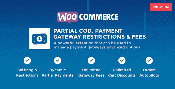 WooCommerce Partial COD – Payment Gateway Restrictions & Fees is a powerful, flexible and easy-to-use WooCommerce extension that can be used to manage payment availability and other gateway-related cart settings based on product rules and conditions.