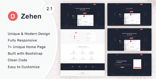 Zehen is a responsive landing page Template is an ideal layout for Business Startups, web studio and innovative organizations. Responsive in view of Bootstrap v5.3.3 This is one page for setting your data. This is one page for placing your information. All files and code has been well organized and easy to customize.
